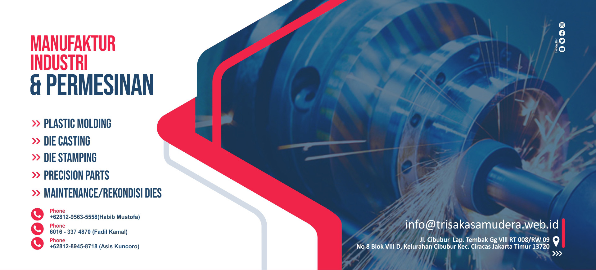 PT. TRI SAKA SAMUDERA adalah perusahaan manufaktur yang terkemuka dan inovatif dengan spesialisasi dalam menyediakan layanan manufaktur dan pengembangan komprehensif untuk industri otomotif. Berdiri dengan komitmen pada keunggulan dan presisi, kami telah membangun reputasi sebagai mitra terpercaya bagi perusahaan yang mencari solusi berkualitas tinggi dalam pembuatan cetakan plastik, die casting, die stamping, dan produksi suku cadang presisi. Dedikasi kami dalam memberikan hasil yang luar biasa telah menempatkan kami sebagai pemain utama di sektor manufaktur.